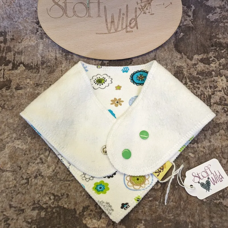 Zur Preisverfolgung hinzufügenDreieckstuch aus weichem Sweat-Stoff. Geschlossen wird das Tuch im Nacken mit einem Druckknopf – so kann das Tuch nicht verloren gehen :)