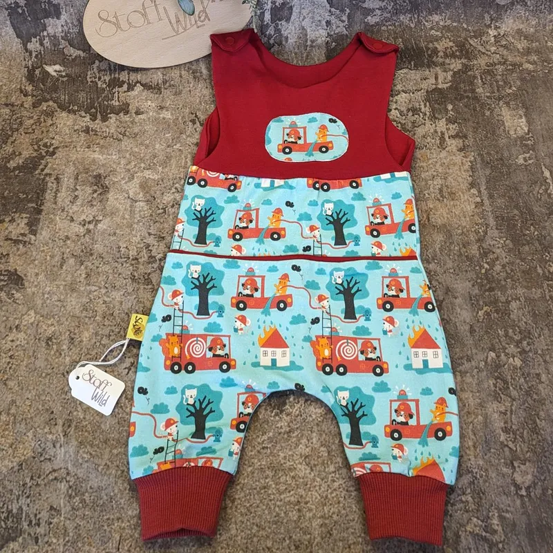 Baby-Latzhose / Romper “Feuerwehr” Gr. 50/56