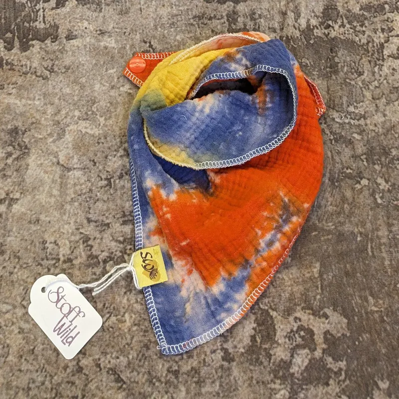 Tipp: Tuch im Nacken knoten und mit dem Druckknopf verschließen – so bleibt es garantiert auch bei wilden Kids am Platz 🧡