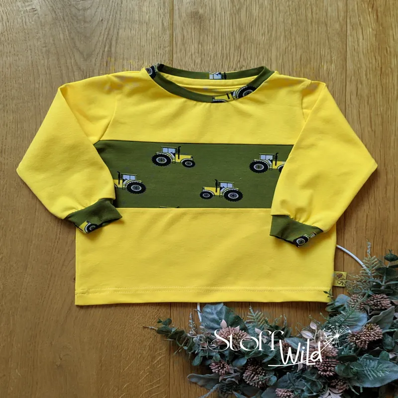 Das Set besteht aus einer bequemen Hose mit tollem Traktor-Motiv & einem Langarm-Shirt in gelb mit Traktor-Unterteilung!Bauchumfang Hose ab 46cm: Da der Bauchbund hier aus gelbem Jersey anstatt Bündchenware gefertigt wurde, ist der Umfang etwas größer – gerne nähe ich vor dem Versand noch einen Gummi ein, falls euch der Umfang etwas zu groß ist (Kostenlos natürlich 😉 )