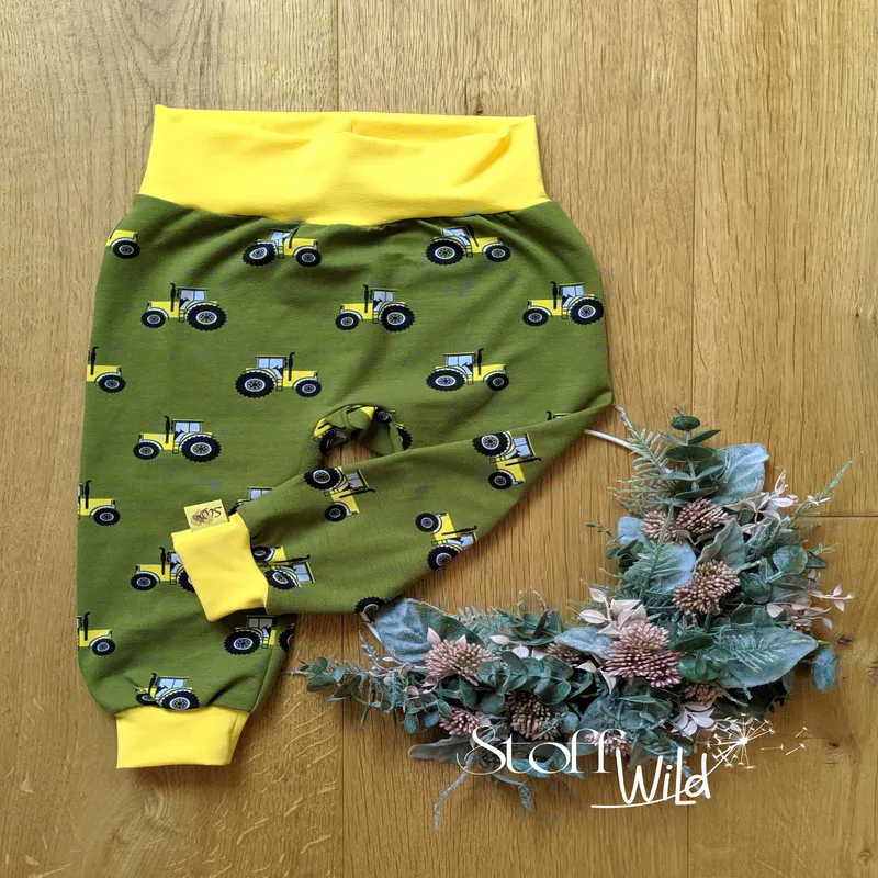 Das Set besteht aus einer bequemen Hose mit tollem Traktor-Motiv