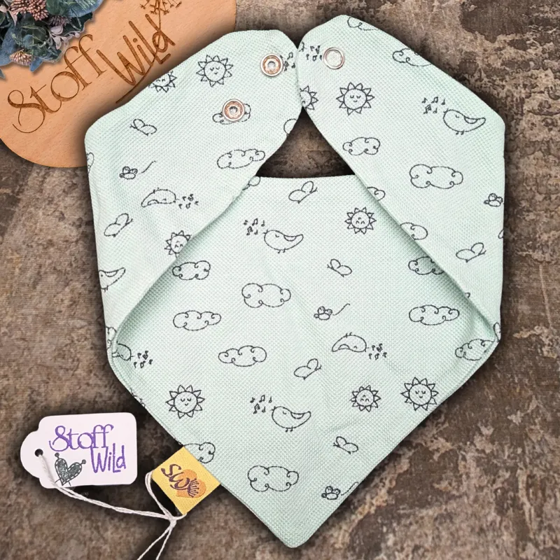 Wendehalstuch aus Waffel-Jersey | Naturmotive in zartem Mintgrün 🌿☁️