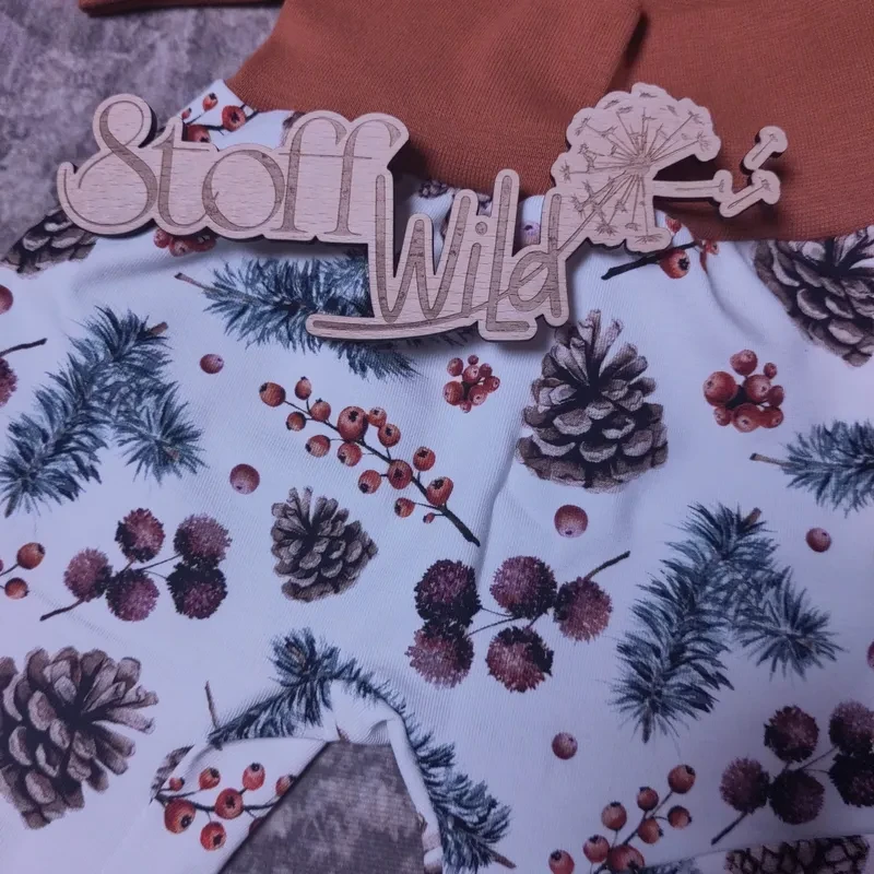 Tauche ein in die zauberhafte Winterwelt mit dem liebevoll handgefertigten Babyset „Tannenzweige & Zapfen“. Dieses Set, bestehend aus einer gemütlichen Pumphose und einer passenden Bündchenhaube, vereint Komfort, Stil und Nachhaltigkeit – perfekt für Mütter, die für ihre Kinder einzigartige und farbenfrohe Kleidung suchen.