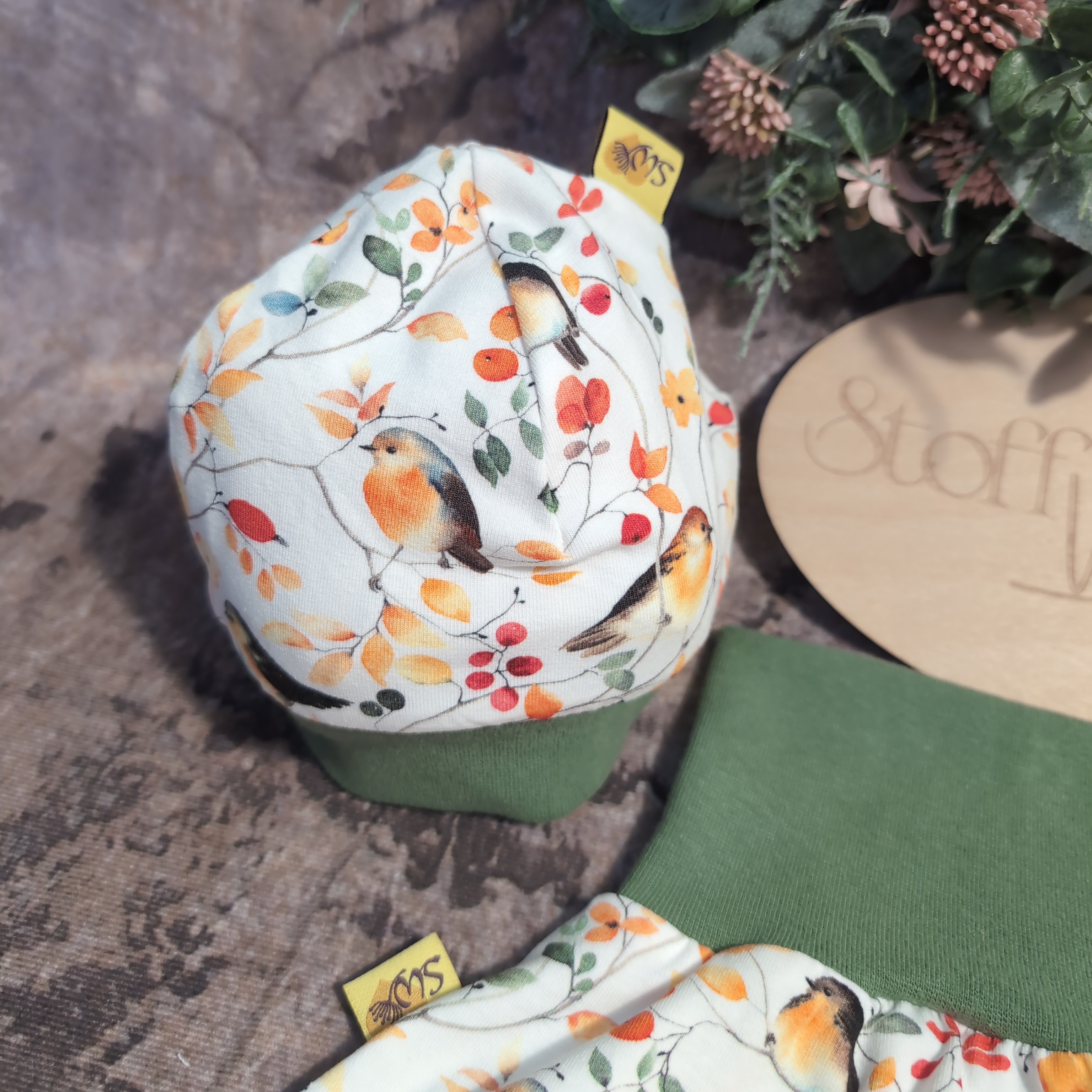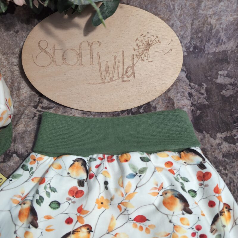 Stell dir vor, dein Baby liegt wohlig eingekuschelt im Kinderwagen. Die Vögel auf der Hose zwitschern fast schon hörbar, die Farben strahlen mit dem Lächeln deines Kindes um die Wette. Du weißt: Dieses Outfit wurde mit Liebe gemacht – für genau solche Momente voller Wärme, Nähe und Bewunderung. Und du hast dich für etwas Besonderes entschieden – für Natürlichkeit, für Qualität, für Handwerk mit Herz.
