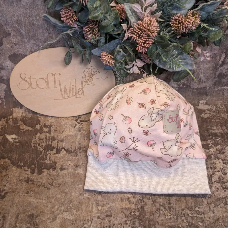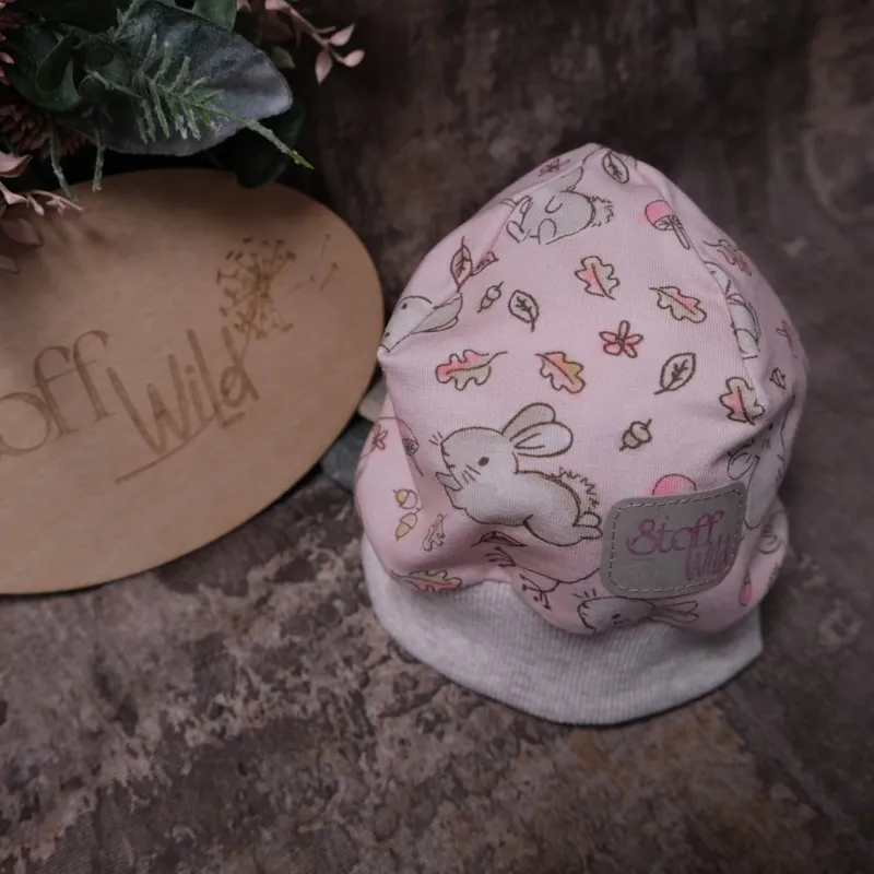 Bündchenhaube Hase Rosa – Niedlich, kuschelig & perfekt für kleine Hasenfreunde