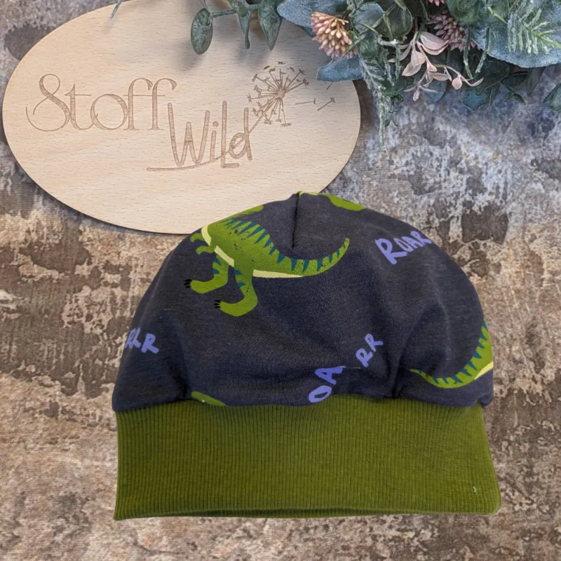 Bündchenhaube Dino, Gr. M 46-52cm