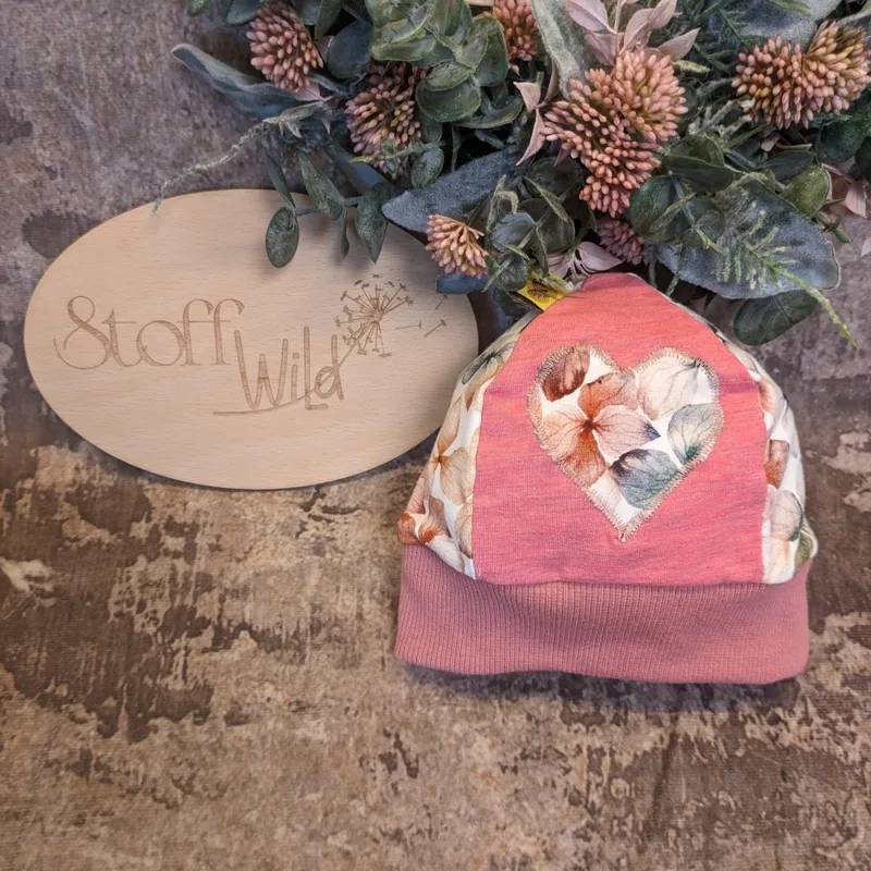Zarte Blüten für euer Baby! Unsere Bündchenhaube im floralen Herzdesign ist die süße Krönung für die Kleinsten.