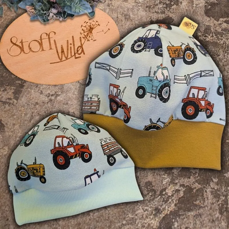 Mit der Bündchenhaube Traktor schenkst du deinem Kind ein kuscheliges, stilvolles und einzigartiges Accessoire. Jetzt bestellen und deinem kleinen Bauernhof-Fan eine Extraportion Freude bereiten!