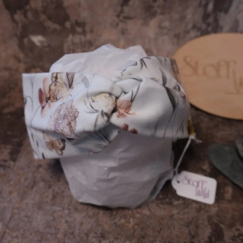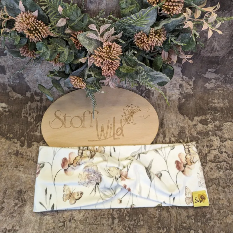 Knoten-Stirnband “Schmetterlinge & Blumen”