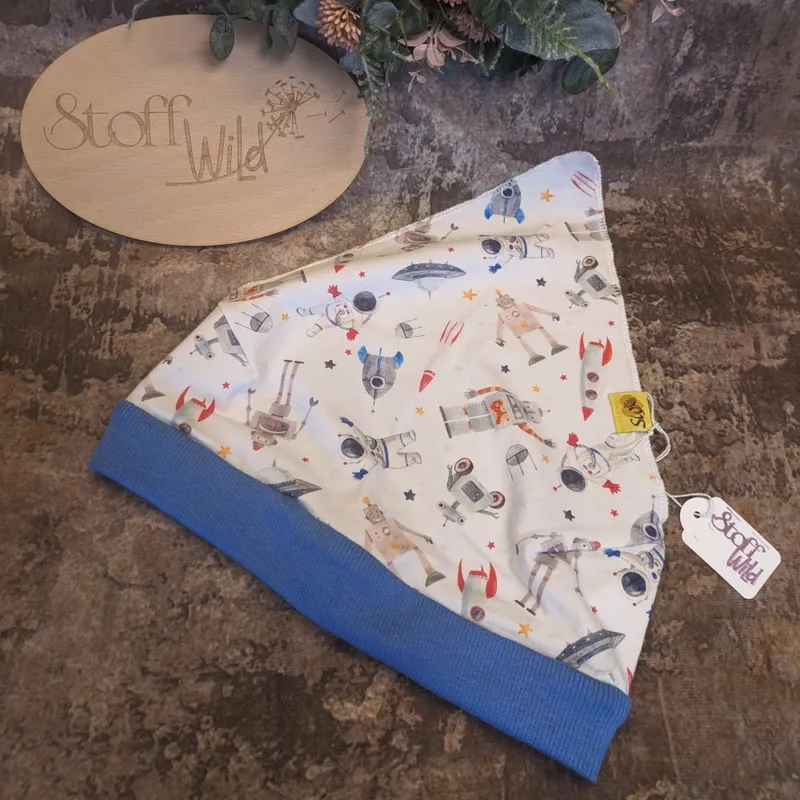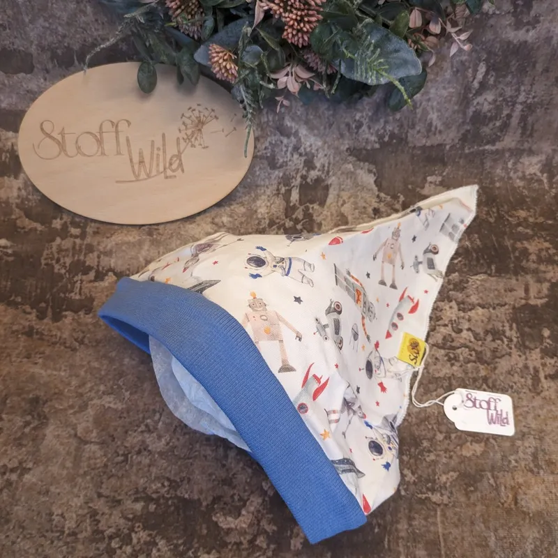 Damit das Kopftuch auch lange passt und mitwächst, bekommt es vorne als Abschluss ein Bündchen.