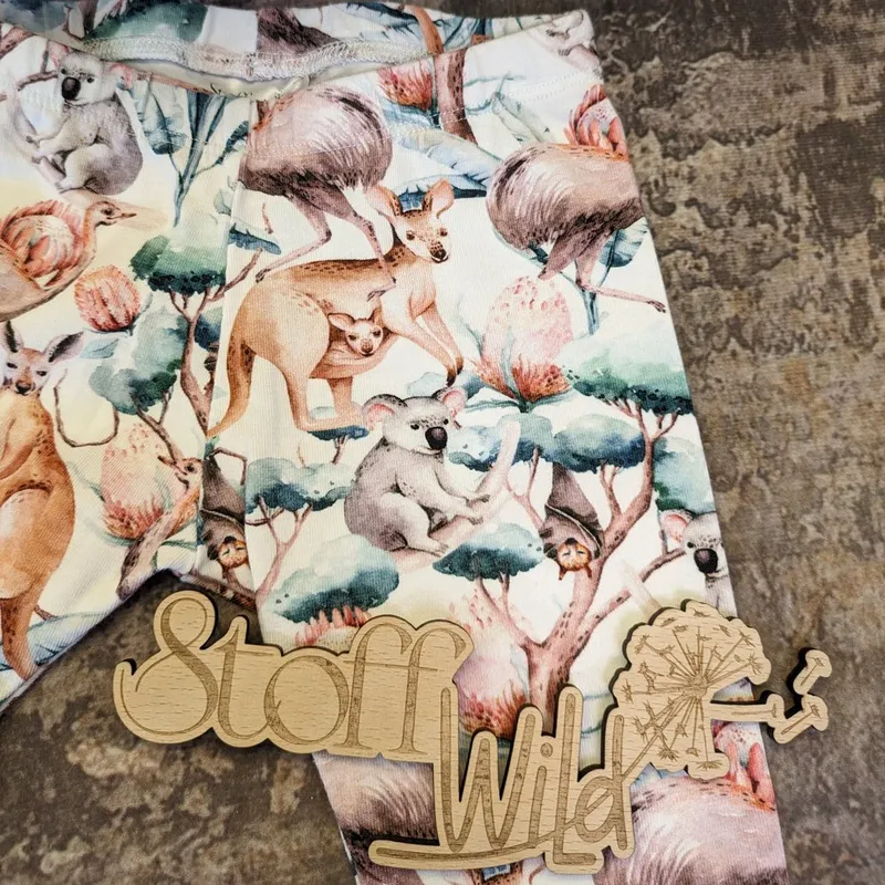 Zur Preisverfolgung hinzufügenWunderschöne & bequeme Leggings aus weichem Bio-Jersey mit tollem Australien-Print / Australien-Thema! Das “Australien-Muster” weißt Fauna und Flora von Australien auf: Känguru, Koala, Flughund, Emu, Eukalyptusbaum & Eukalyptusblüten 😍