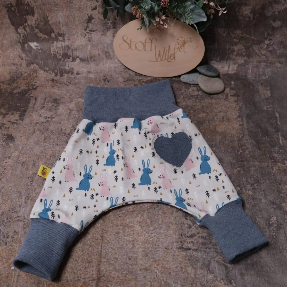Süsse Mitwachshose / Pumphose mit Hasen-Motiv und einem Herz 💙