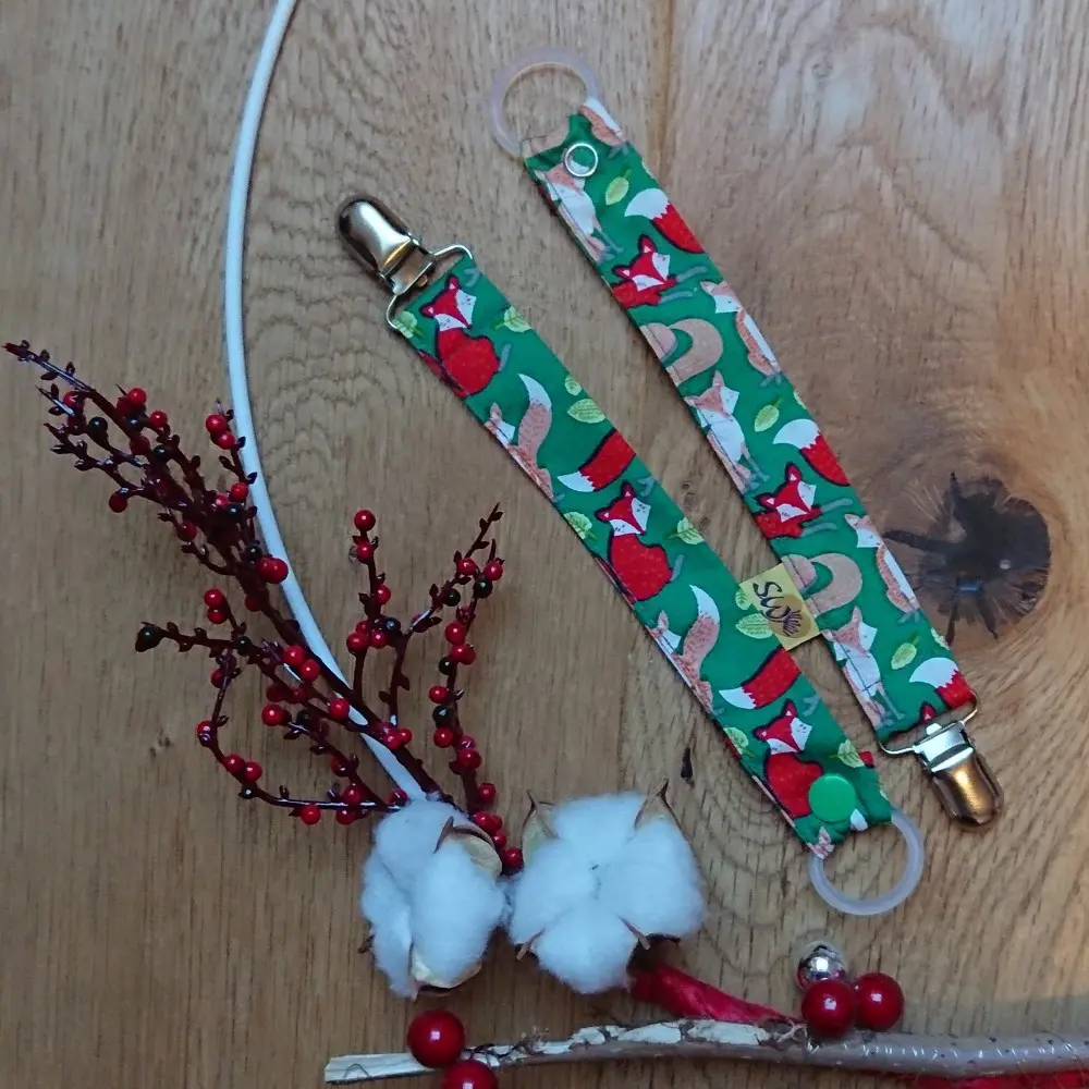 Das Schnullerband hat einen Metall-Clip und einen Silikon-Ring-Adapter. Der Schnuller kann auch direkt am Band mit einem Druckknopf befestigt werden – passend für alle Schnuller-Typen!