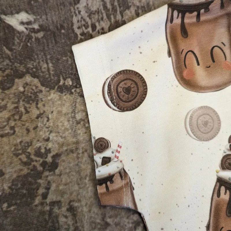 - Hauptstoff: Weißer Jersey mit Weihnachtsbären-Allover-Muster.