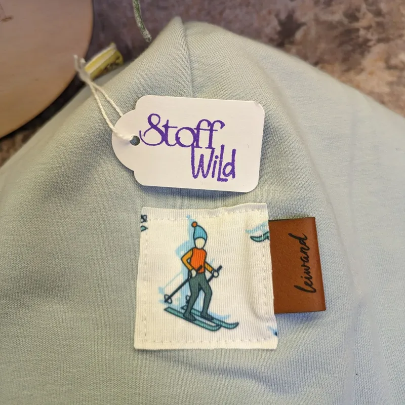 Highlight außen ist der Skifahrer-Aufnäher, bei welchem seitlich ein Kunstleder-Label mit dem Spruch „leiwand“ herausschaut 😎